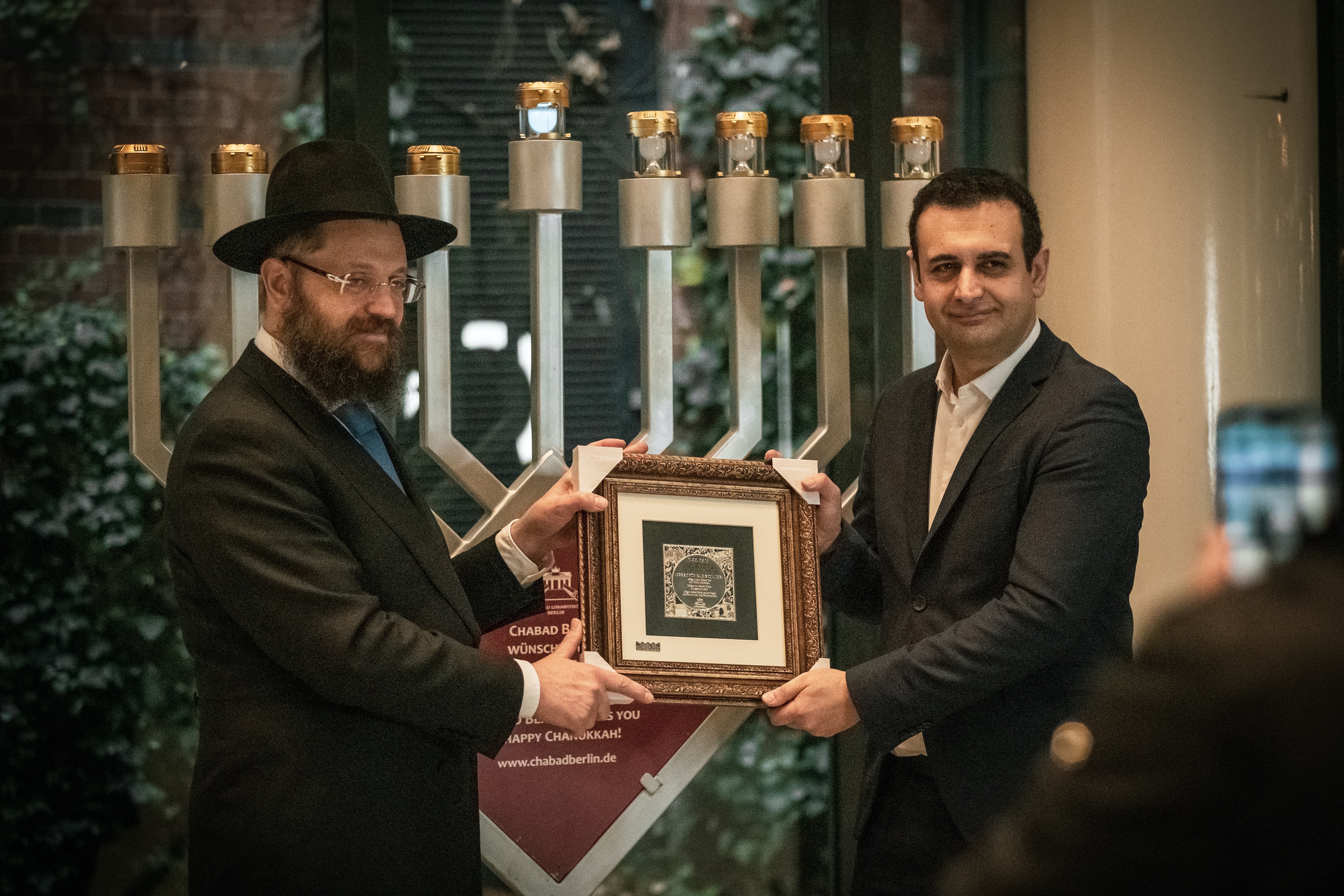 Die jüdische Gemeinde feiert in diesem Jahr vom 18. bis zum 26. Dezember Chanukka – das Lichterfest. An diesem Feiertag wird an jedem der acht Tage eine Kerze des Chanukka-Leuchters angezündet. Gemeinsam mit Yehuda Teichtal, Gemeinderabbiner der Jüdischen Gemeinde zu Berlin und Vorsitzender des Jüdischen Bildungszentrums, entzündete FDP-Generalsekretär Bijan Djir-Sarai die Lichter des Chanukka-Leuchters, der im Hans-Dietrich-Genscher-Haus aufgestellt ist.