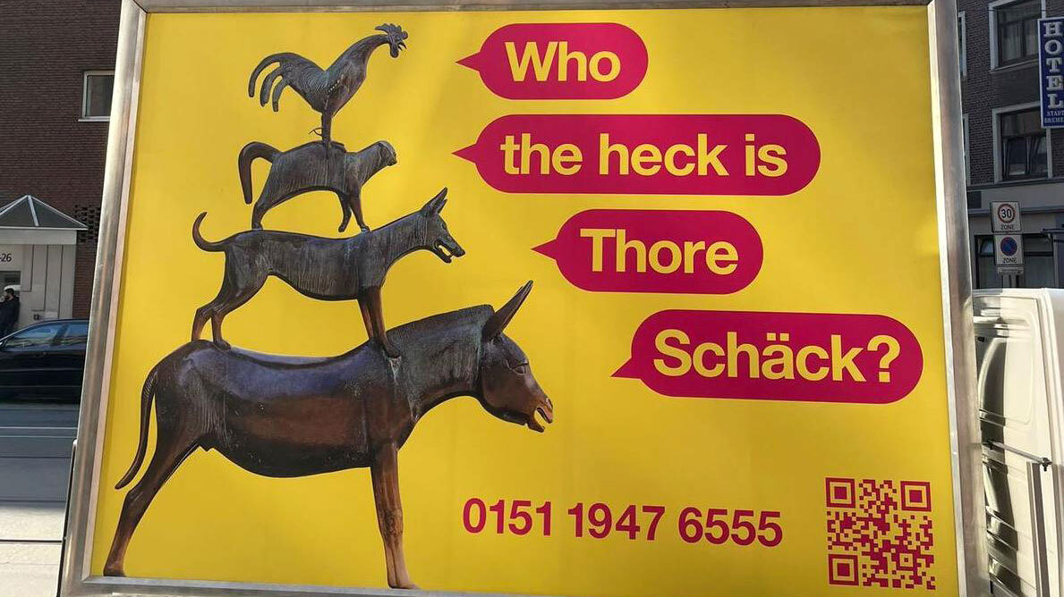 Auf gelb leuchtenden Litfaßsäulen, Stickern und Postkarten finden die Bürgerinnen und Bürger die Telefonnummer von Thore Schäck. Per QR-Code gelangen Sie außerdem zu einer Homepage, die mit Informationen über Thore Schäck und seine Wahlkampfziele für Bremen versehen ist.